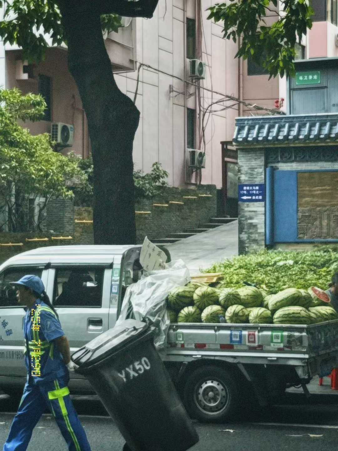 2025年7月29日,社区里推垃圾桶的一位工作人员
