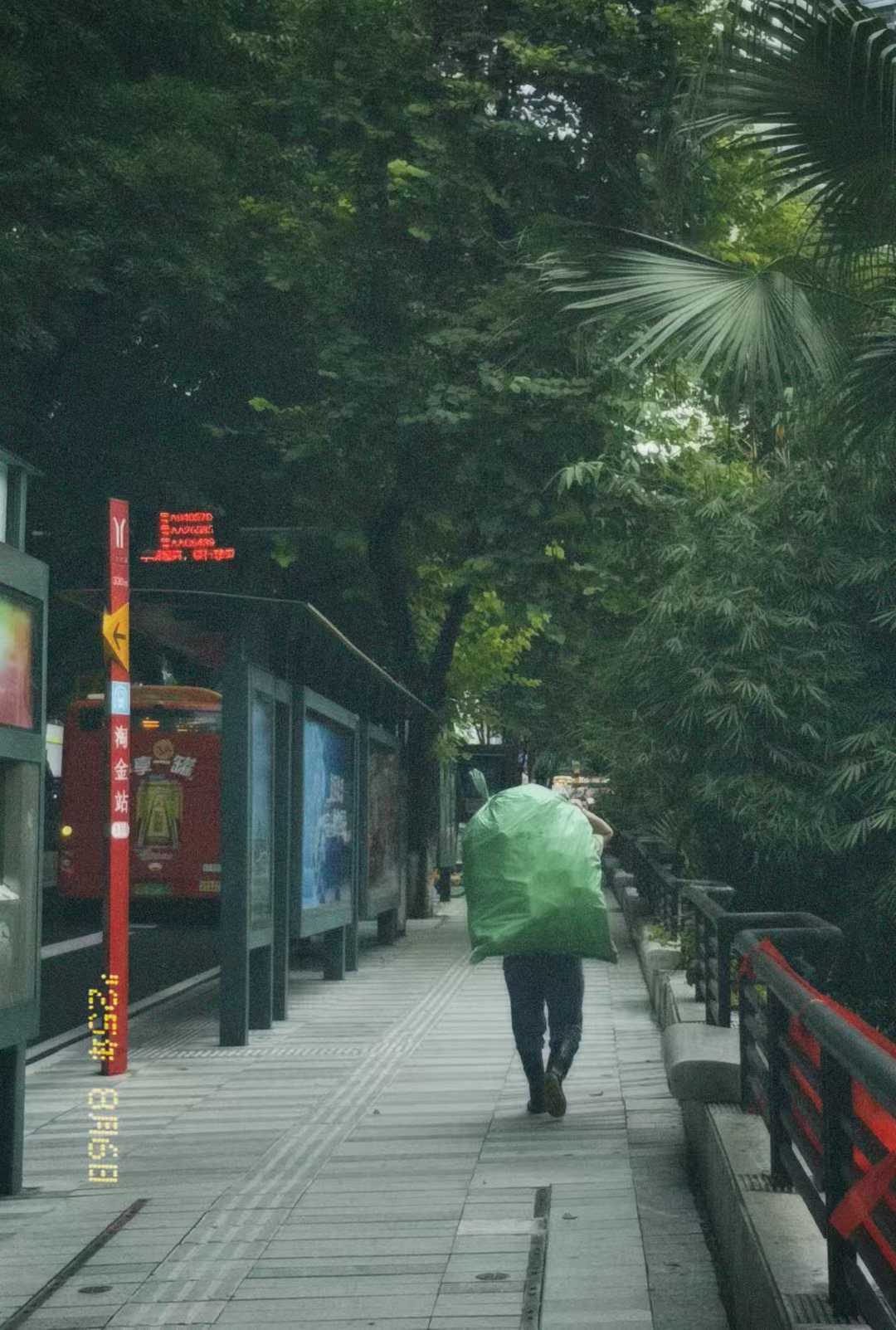 2025年8月15日,淘金地铁站附近扛废品的老人