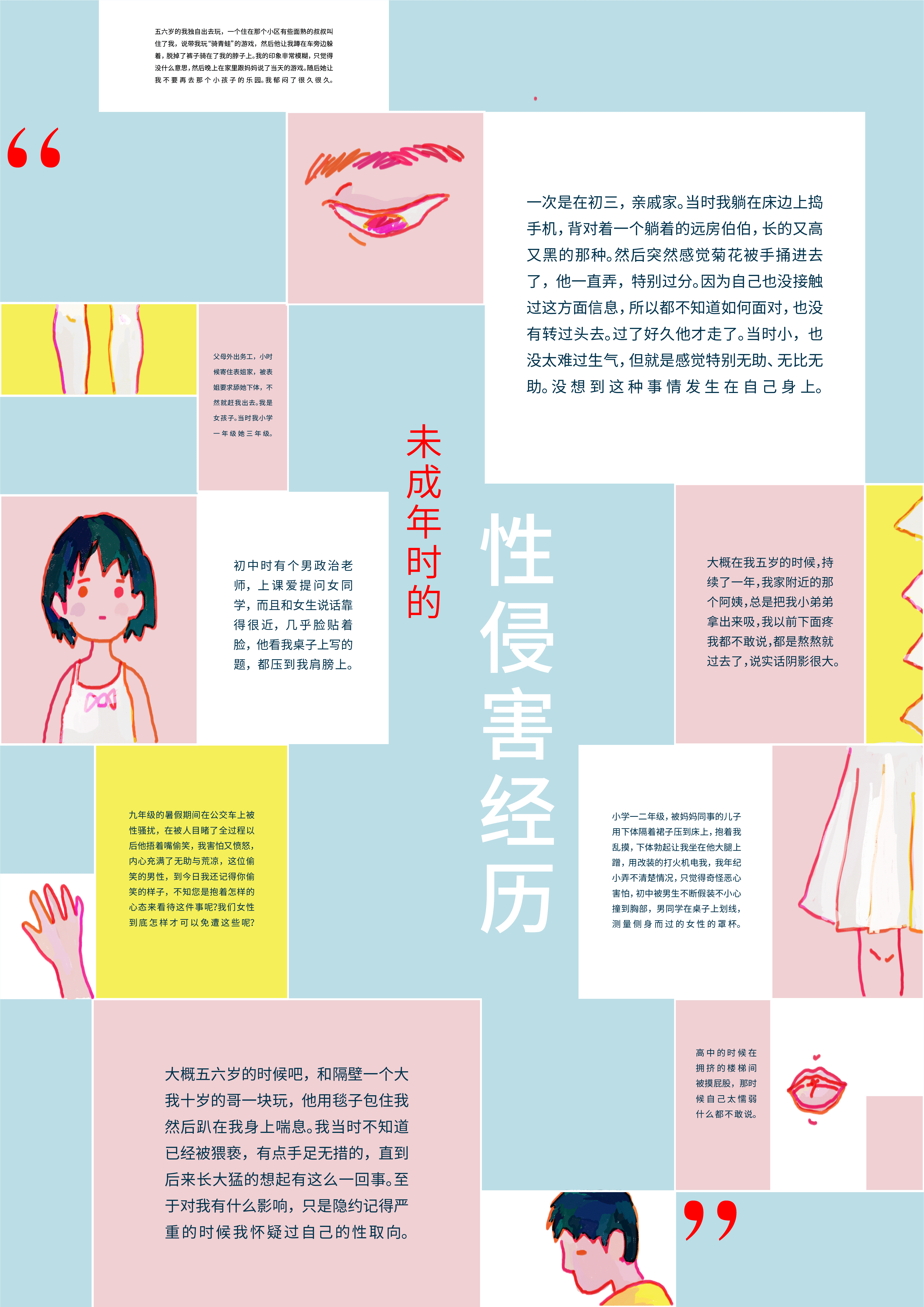 What’s particularly alarming is that many remain unaware of the gravity of this problem. Art and literature on the topic are scarce, with even fewer works using the medium of informational graphic design. It is with this gap in mind that we hope to make a small but meaningful contribution, reclaiming and redefining the pure and innocent world that belongs to children.