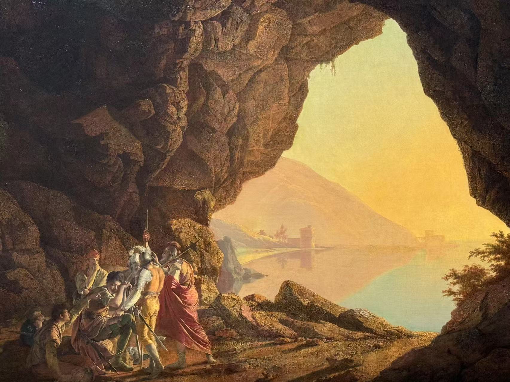 Grotto by the Seaside in the Kingdom of Naples with Banditti, Sunset, Joseph Wright of Derby, 1778