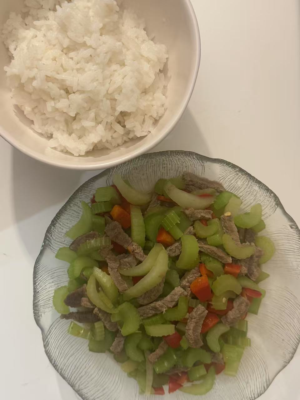 Prep the ingredients Slice the beef into strips (accidentally or intentionally!). Thinly slice the celery and bell pepper into strips for uniform cooking.