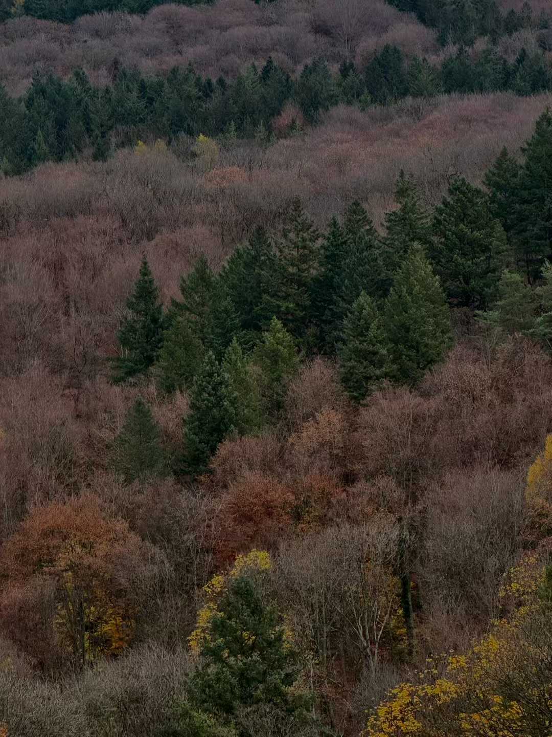 Figure 5: Mid-autumn, I went hiking and walked through a forest of muted reds and golds. The leaves whispered underfoot, the air was crisp, and the forest remained quietly still—Die Wälder schweigen.